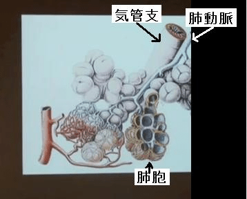 外から入ってきた悪いものがこの辺のところ(肺胞)で引っ掛かるわけです。