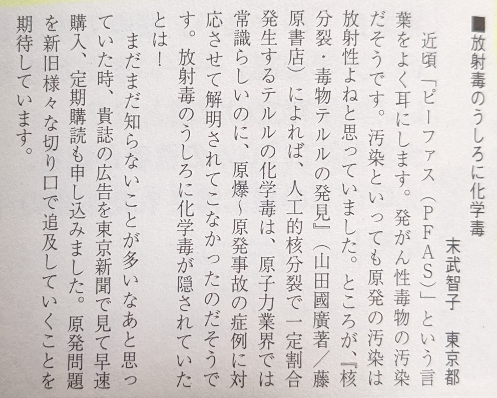 〈読者の声)雑誌週刊新社会、季節、女のしんぶん